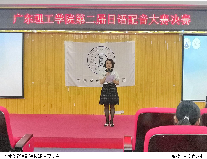 本网讯(外国语学院助理团 徐影影)为促进日语专业学生视听说能力全方面提高,打牢语言基础,开阔国际视野,6月16日下午,外国语学院在42101举办第二届日语配音大赛。院长潘利锋教授,党总支书记吕丽红,副院长郑建蓉,党总支副书记吕媛,日语专业辅导员出席。李敏、郭扬、王姊彦教师担任大赛评委。