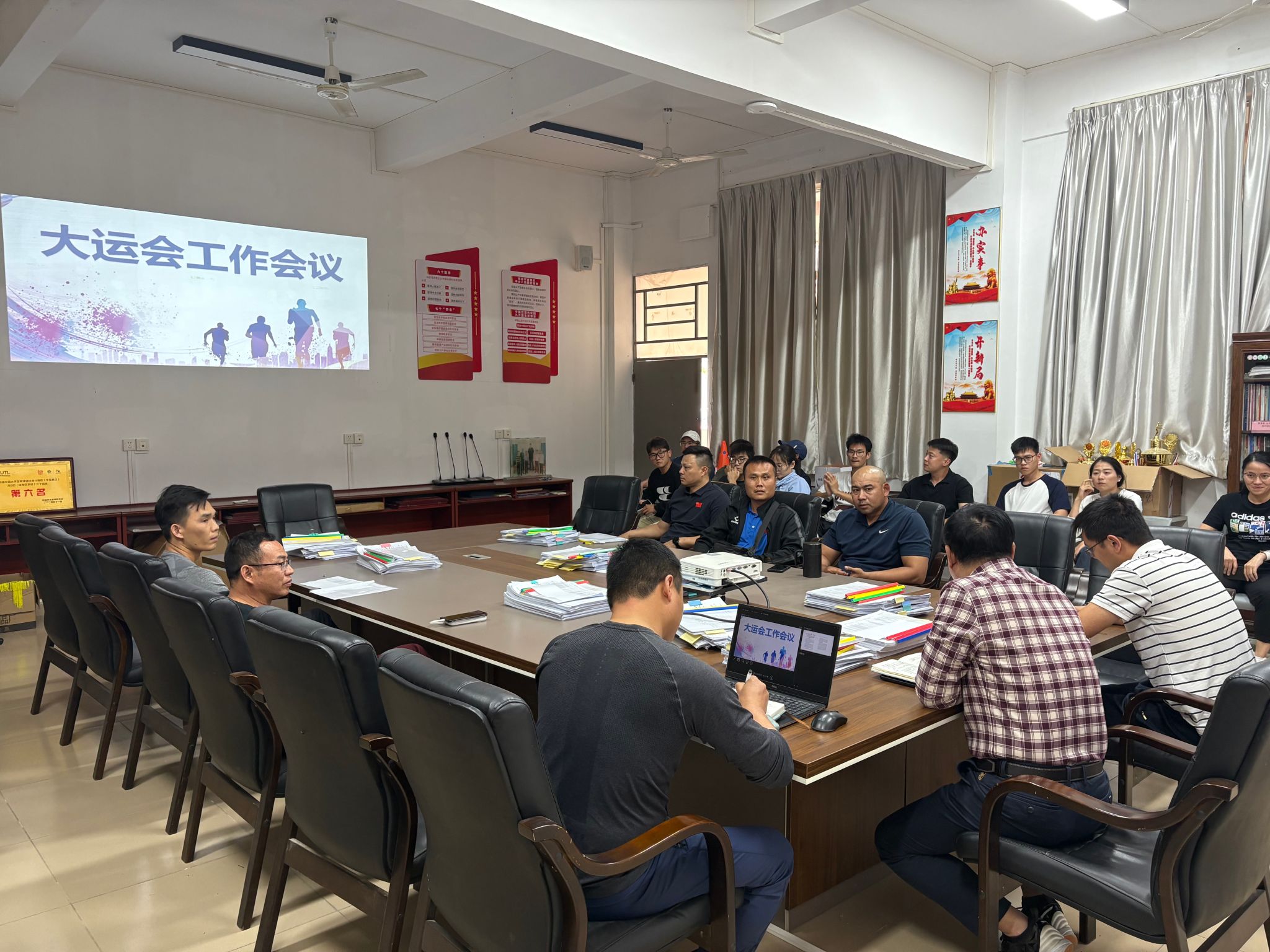 本网讯(体育学院 新闻中心)4月15日下午,体育学院在36栋104会议室召开广东省第十二届大学生运动会赛前工作部署会议,全面统筹赛事筹备工作,凝聚共识,为即将到来的大运会做好充分准备。体育学院院长梁超英、党委书记夏磊、副院长杨波出席会议,各训练队主教练及助理教练参加会议。