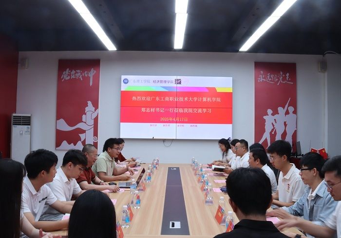 本网讯 4月17日上午,广东工商职业技术大学计算机学院党总支书记郑志材率学生第一党支部书记孔嘉欣、团委书记卢锐及辅导员代表莅临我院交流访问。我院党委书记甘怀南、党委副书记吴楚升携学工办主任魏甫龙、支部书记及指导教师等团队成员,于4103会议室热情接待并举行专题座谈会。会上,双方围绕新时代党团建设创新路径、学生管理协同机制等议题展开深度研讨,通过经验互鉴与案例分享,共探育人工作高质量发展新方向。