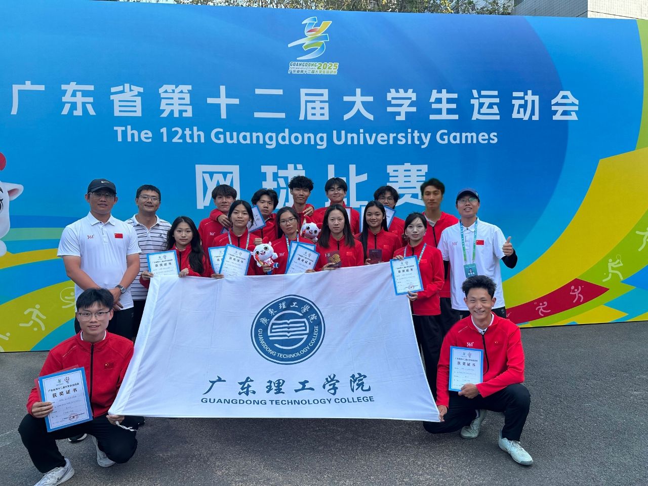 本网讯(体育学院新闻中心)5月8日至15日,由广东省教育厅、广东省体育局联合主办的广东省第十二届大学生运动会网球比赛在华南师范大学圆满落幕。伟德官网网球队在校党委办公室赵玉娴主任、会计学院黎伯毅书记两位领队的精心组织下,以及在夏磊、胡进城、刘涛三位教练的专业指导下,队员们以 “敢教日月换新天” 的魄力,在华南师范大学的赛场上一路披荆斩棘、勇创佳绩。其中,乙组男双摘得铜牌、甲组女双获得第五名、乙组女双获得第八名、甲组女团与乙组男团也分别在小组赛和 1/4 决赛中与强敌激战后,拿下第七名和第八名的成绩。