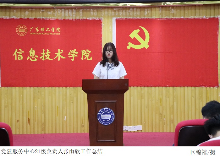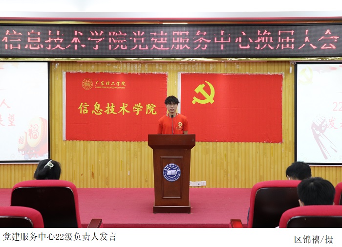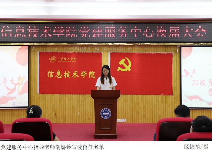 党建服务中心指导老师胡娇铃上台宣读2022级党建服务中心负责人以及学生骨干名单。她希望新任骨干在接下来的工作里,能弘扬党建服务中心的实干精神,同心协力,在上一届的基础上创新工作方法,不断完善工作。