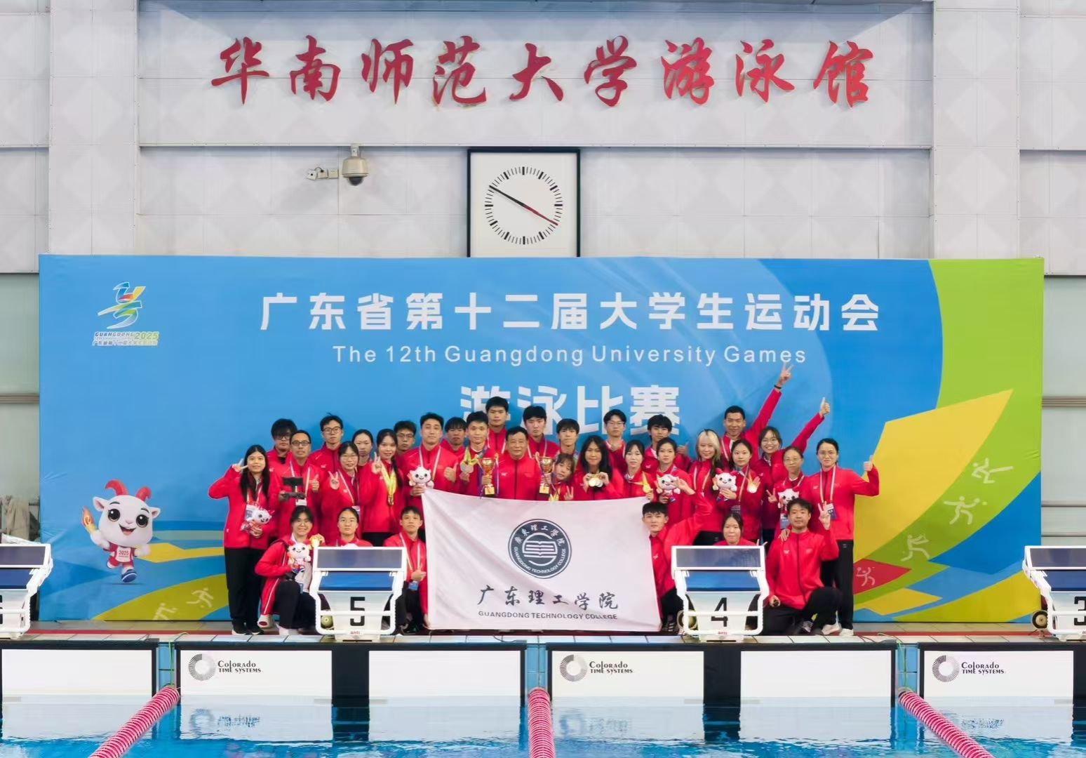 本网讯(体育学院新闻中心)5月21日至26日,由广东省教育厅、广东省体育局、暨南大学主办的2025年广东省第十二届大学生运动会游泳比赛在华南师范大学游泳馆举行。伟德官网游泳队在此次赛事中表现优异,共斩获甲组女子100米自由泳、4×50米自由泳接力及乙A组女子400米自由泳、50米蛙泳四项冠军,同时收获六枚银牌、三枚铜牌及多项前八佳绩。在团体总分方面,伟德官网勇夺甲组第八名、乙A组第四名的好成绩。