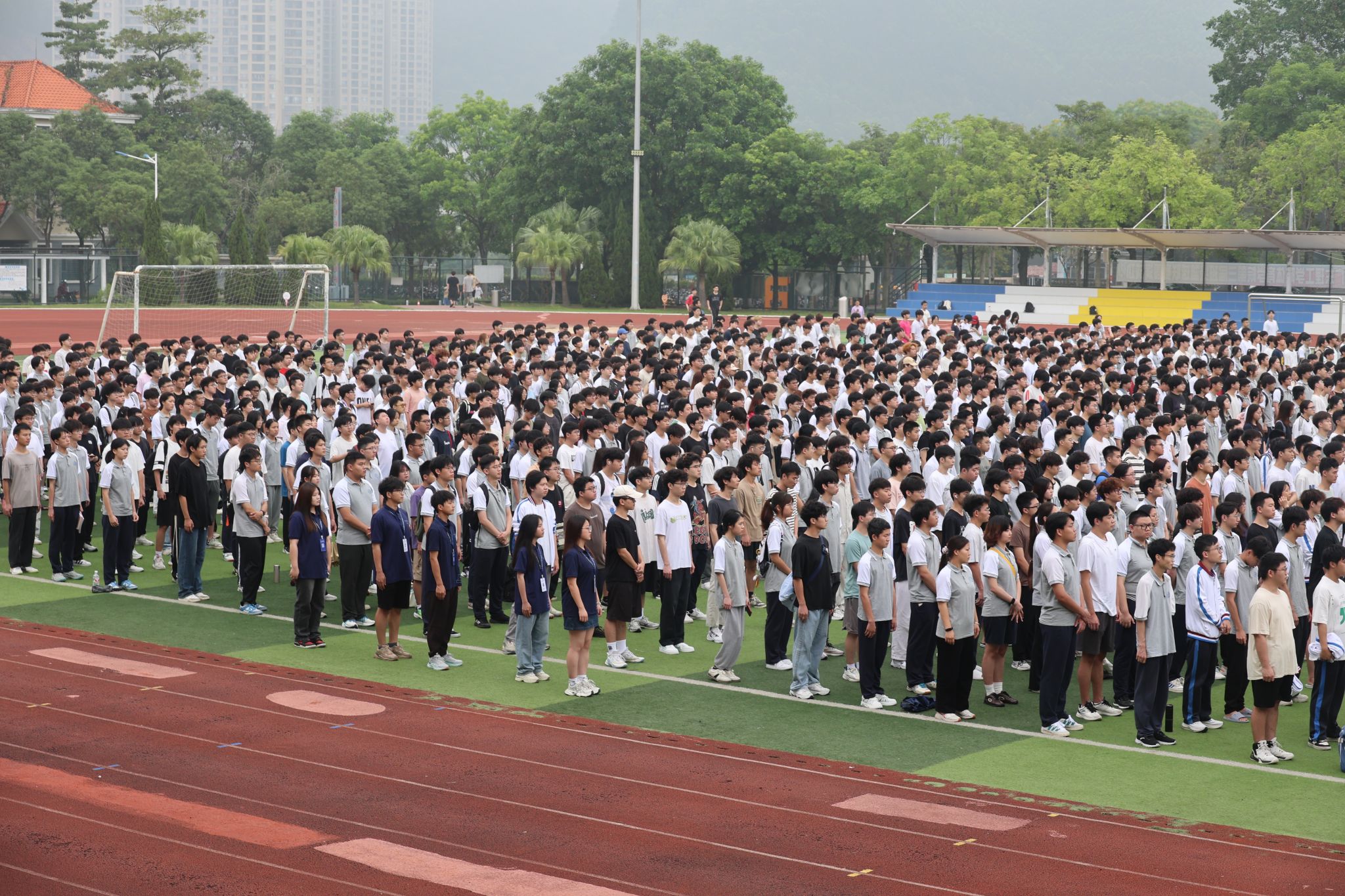 在全体师生的注目礼下,国旗护卫队踏着铿锵有力的步伐护送国旗入场,伴随着庄严的中华人民共和国国歌,五星红旗冉冉升起,在晨光中猎猎招展。现场师生凝神肃立齐声合唱,炽热的爱国情怀与崇高敬意在每个人心中激荡。