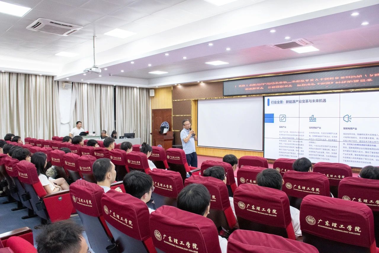 互动环节,学生们热情高涨,围绕“如何平衡理论学习与实践应用”“新兴岗位入行门槛”等现实问题踊跃提问。面对大家的困惑,施继江结合自身多年从业经历,给出了诚恳且实用的建议。他表示,在产业变革的关键时期,机遇总是青睐那些“早布局、深扎根”的行动派。他建议同学们,可以主动加入专业老师的科研项目,通过实践将理论知识转化为实际能力。同时,养成定期关注行业报告的习惯,及时了解行业动态。通过这些方式,逐步构建起对新能源产业的系统性认知,为未来踏入新兴岗位、成为“双碳”破局者奠定坚实基础。