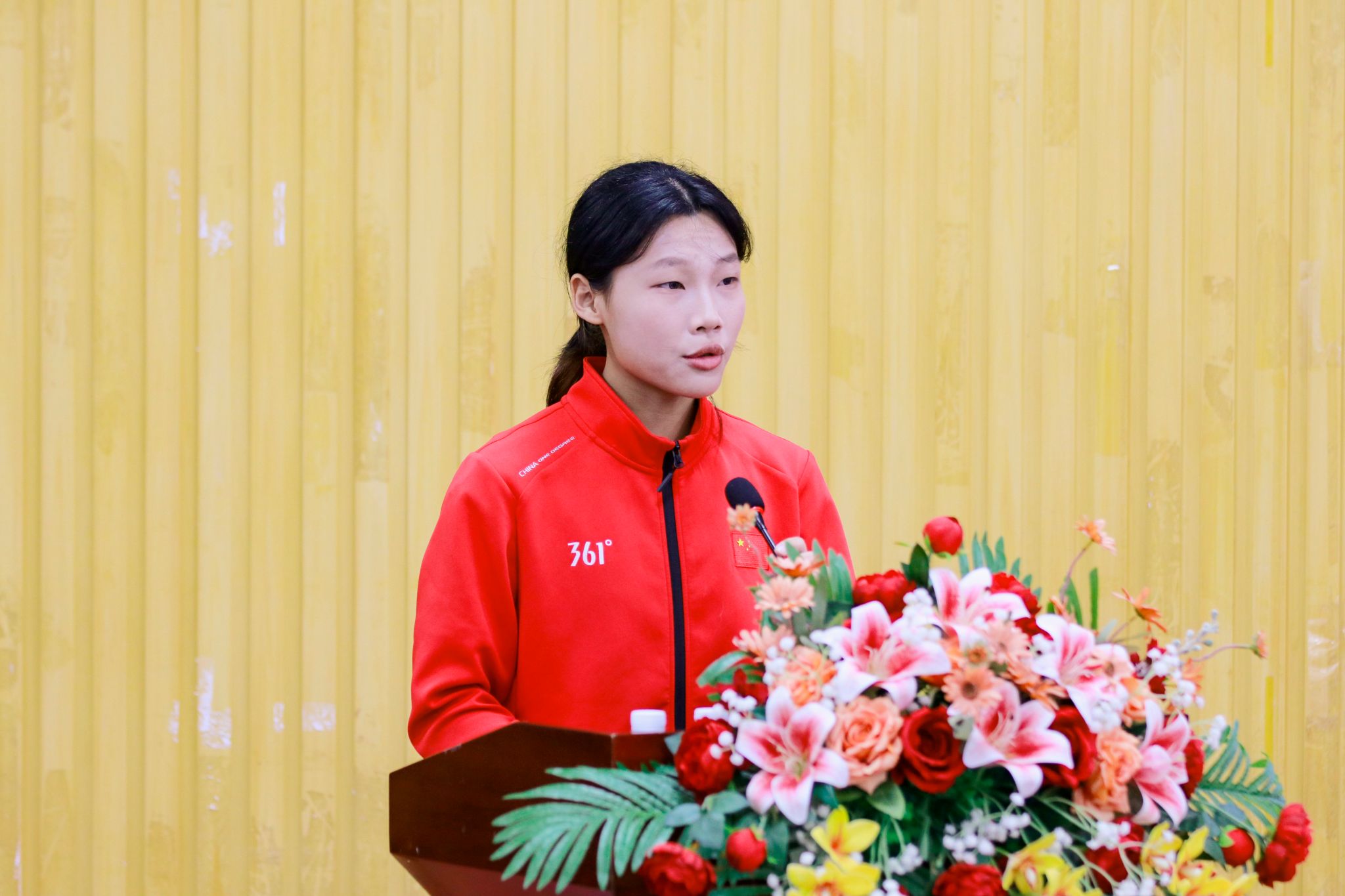运动员代表李湘薇、教练员代表卢京顺分别发言,分享了训练和比赛中的宝贵经验与深刻感悟,展现了团队顽强拼搏、团结协作的精神。