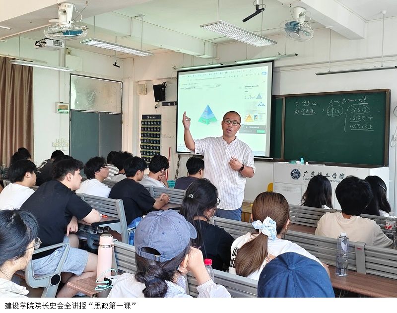 本网讯(建设学院)为深入贯彻落实习近平总书记关于党史学习教育的重要论述精神和党的教育方针,引导新生从党的百年奋斗历程中汲取智慧、筑牢信仰根基,9月25日上午,建设学院院长史会全在6栋305教室为2025级全体新生讲授新学期的“思政第一课”。