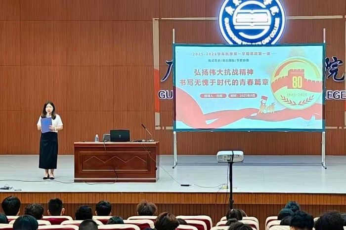 本网讯(经济管理学院 黄秋润)为引导新生将个人理想与国家发展相结合、明确学习实践方向,进而为民族复兴贡献青春力量,9月23日,经济管理学院党委副书记吕媛以“弘扬伟大抗战精神,书写无愧于时代的青春篇章”为题,为新生开讲思政第一课,以课程为核心载体传递思想、锚定方向。