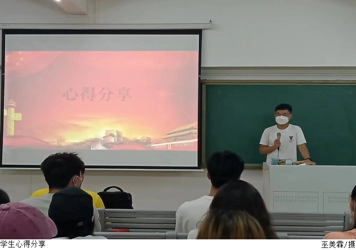 在视频学习之后,曾锋颖等三位同学上台分享学习心得。他们表示已深刻认识到民法典与社会生活的密切关系。作为当代大学生要更加主动地学习法律知识,增强自我道德修养,让《民法典》融入日常生活,真正把法治精神内化于心,外化于行,推动院系良好法律氛围的形成,加强学院学风建设。