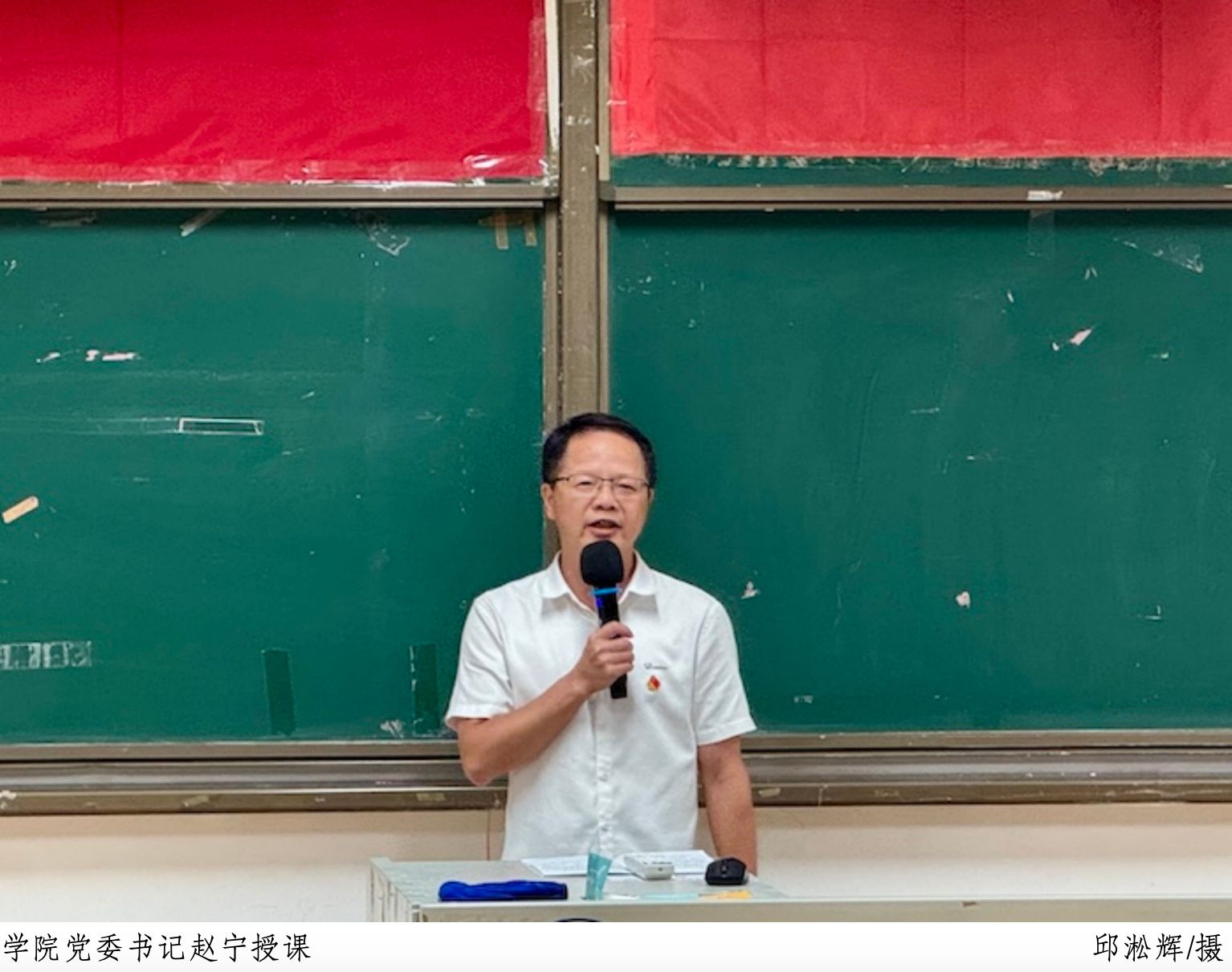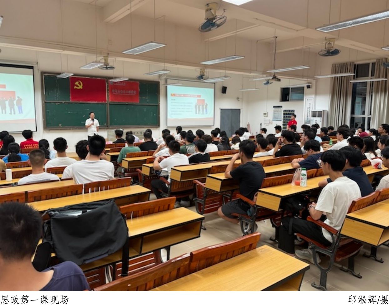 本网讯(电气与电子工程学院学生党建工作中心 钟妮珊)2025年10月9日晚上,电气与电子工程学院党委书记赵宁在42栋201室以“厚植家国情怀,励志担当大任”为主题讲授思政第一课。