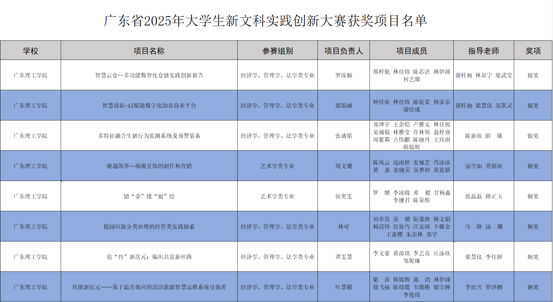图2 项目获奖名单