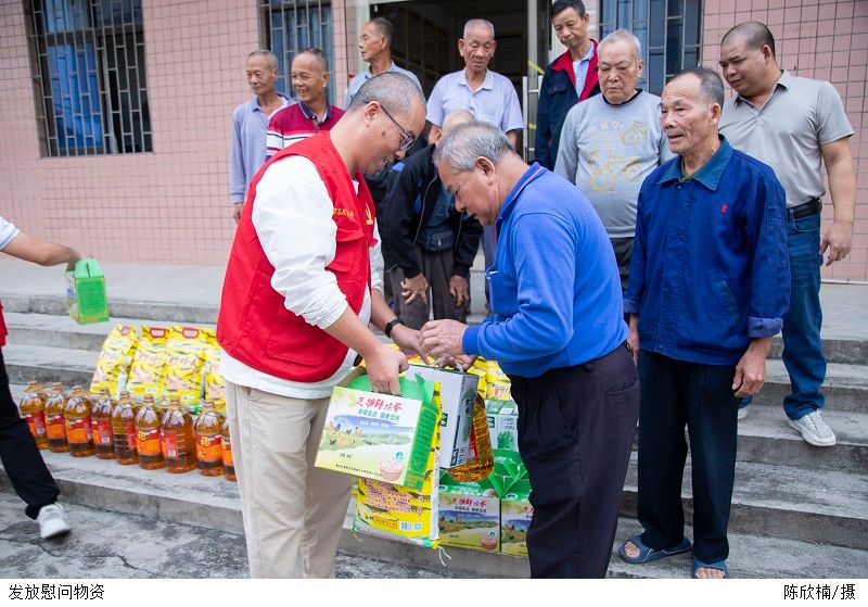 本网讯(建设学院)岁岁重阳,今又重阳。在重阳节来临之际,为传承中华民族尊老敬老的传统美德,弘扬党的光荣传统和优良作风,10月29日上午,建设学院党委组织开展重阳节慰问活动。学院党委书记欧阳德、院长史会全、副书记焦根平带领慰问团队,专程前往肇庆市金渡镇五股社区党群服务中心,集中慰问社区老党员,为他们送去节日的祝福与慰问物资。