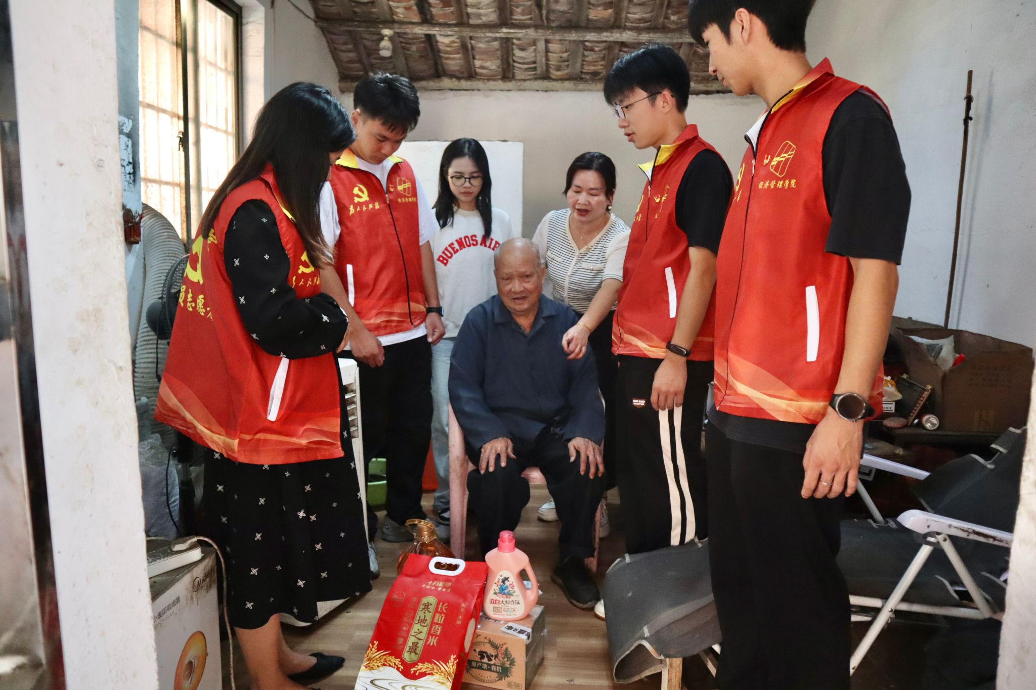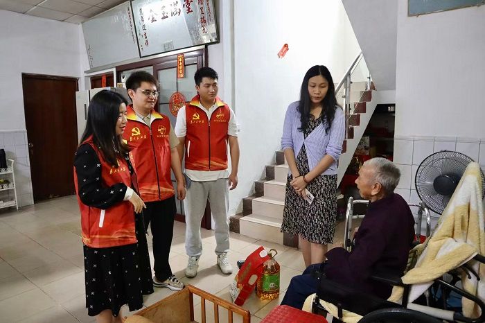 本网讯(经济管理学院 蒋天麟 阮豪胜)为深入学习贯彻党的二十届四中全会精神,引导广大党员深刻领会全会核心要义与实践要求,本次党日主题活动旨在弘扬中华民族传统美德,发挥党员的先锋模范作用,2025年10月27日,在经济管理学院党委副书记吕媛、魏甫龙、教工第一党支部副书记吴迪、学生第一党支部书记侯小孩、学生第二党支部书记刘任、学生第三党支部书记赵静静的带领下,学生党员代表共同前往鼎湖区苏村社区开展“党系社区情,青春献服务”情暖重阳慰问活动。