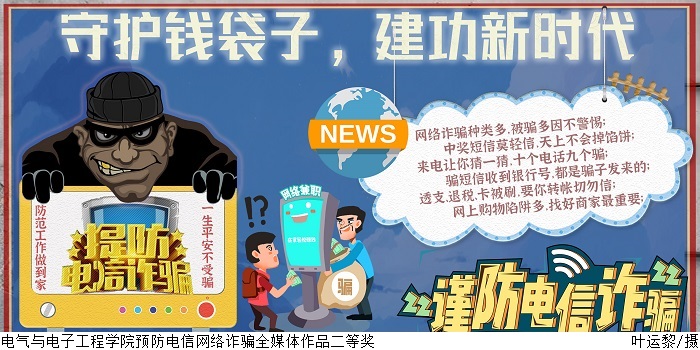 征集活动以“守护钱袋子,建功新时代”为主题,充分运用新媒体手段,深入开展反诈网络宣传引导和正能量传播。活动期间同学们踊跃报名参加,通过对诈骗的类型、手段及形式等多方面入手进行设计创作,用艺术的方式来生动形象地展现反诈的相关知识。评委们通过作品的主题设计、中心思想、作品创意三个方面对每个作品进行仔细审核,进行打分并给予点评,最终评选出一等奖1名,二等奖2名,三等奖3名。