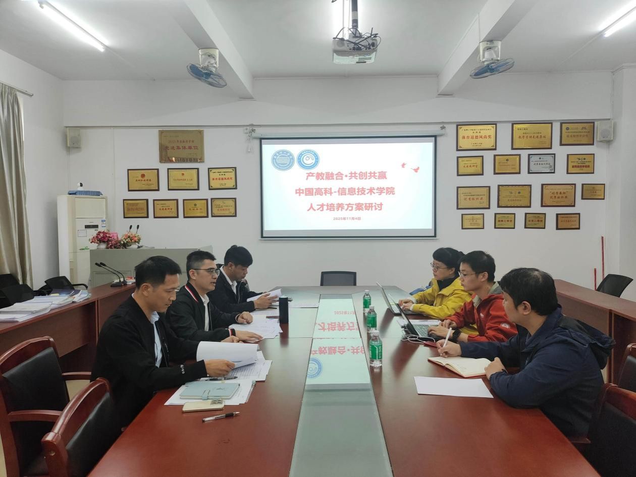 本网讯(信息技术学院)2025 年 11 月 4 日,中国高科与信息技术学院在振华楼 42203 会议室召开人才培养专题研讨会。信息技术学院院长林显宁、副院长徐礼金、副院长刘建友及中国高科产业学院代表参会,围绕合作成效、现存问题及优化方向展开交流,推动产教融合走深走实。