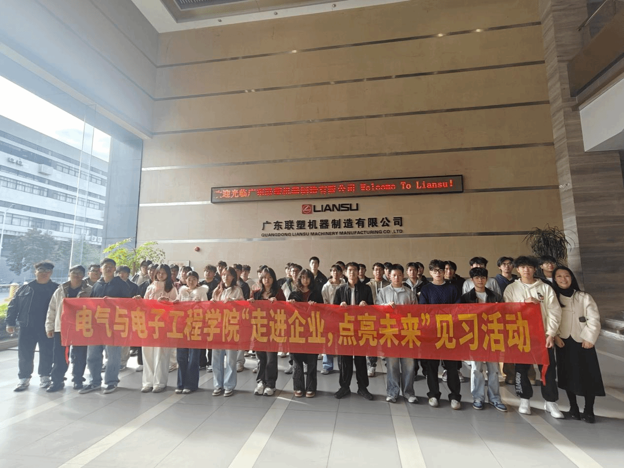 见习第二站,师生团队来到广东联塑机器制造有限公司。在人力资源总监沈斌、招聘经理陈妙怡的全程陪同下,大家深入生产车间,实地察看各类机器设备的运行流程、核心产品的研发生产线,详细了解企业在智能制造、质量管控等方面的先进理念。车间内规范化的管理、智能化的设备、高效化的生产节奏,让同学们对制造业的现代化发展有了全新认知。
