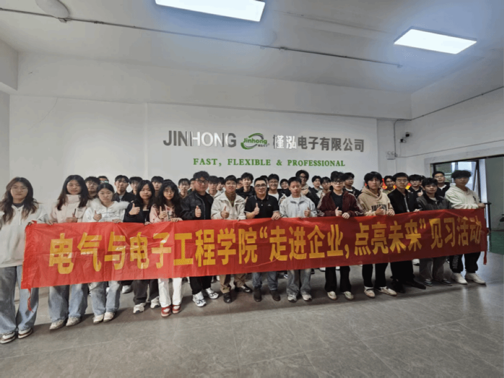 见习最后一站,师生们走进槿泓电子有限公司。在人力资源总监梁总的带领下,大家穿梭于电子元器件生产车间、检测车间,近距离观察产品研发、生产、检测的全流程,深入了解企业在电子领域的技术优势、业务范围及市场竞争力,专业知识与产业实践的联结更加紧密。