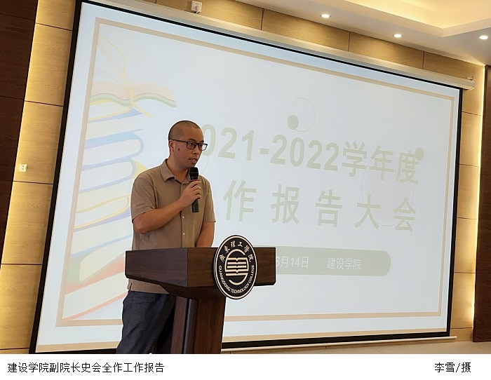 建设学院院长张荣辉,党总支书记周景报,副院长史会全、蒙子伟,副书记焦根平依次向全体教职工做年度工作报告。