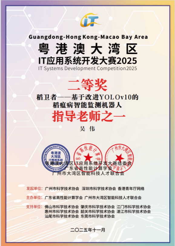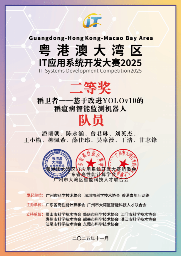 《稻卫者——基于改进YOLOv10的稻瘟病智能监测机器人》获二等奖