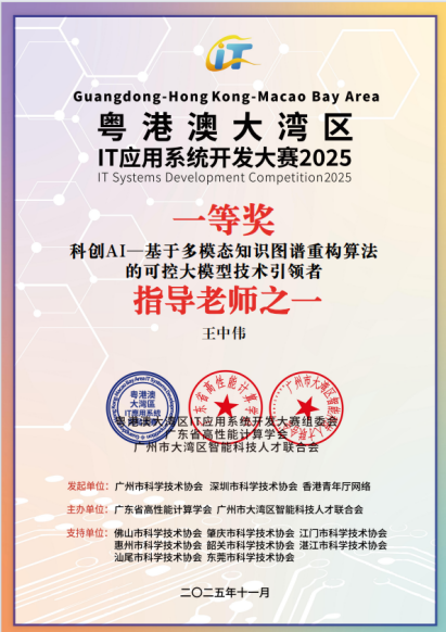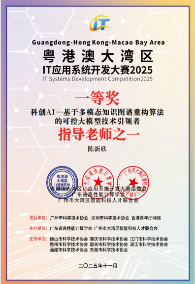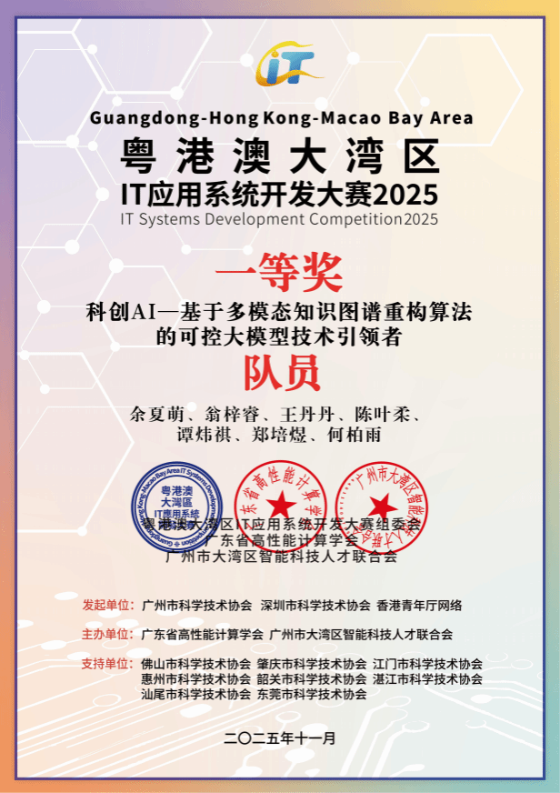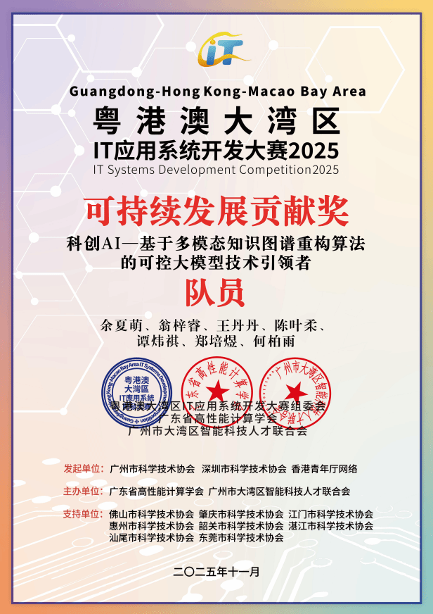 《科创AI——基于多模态知识图谱重构算法的可控大模型技术引领者》获一等奖与“可持续发展贡献奖”