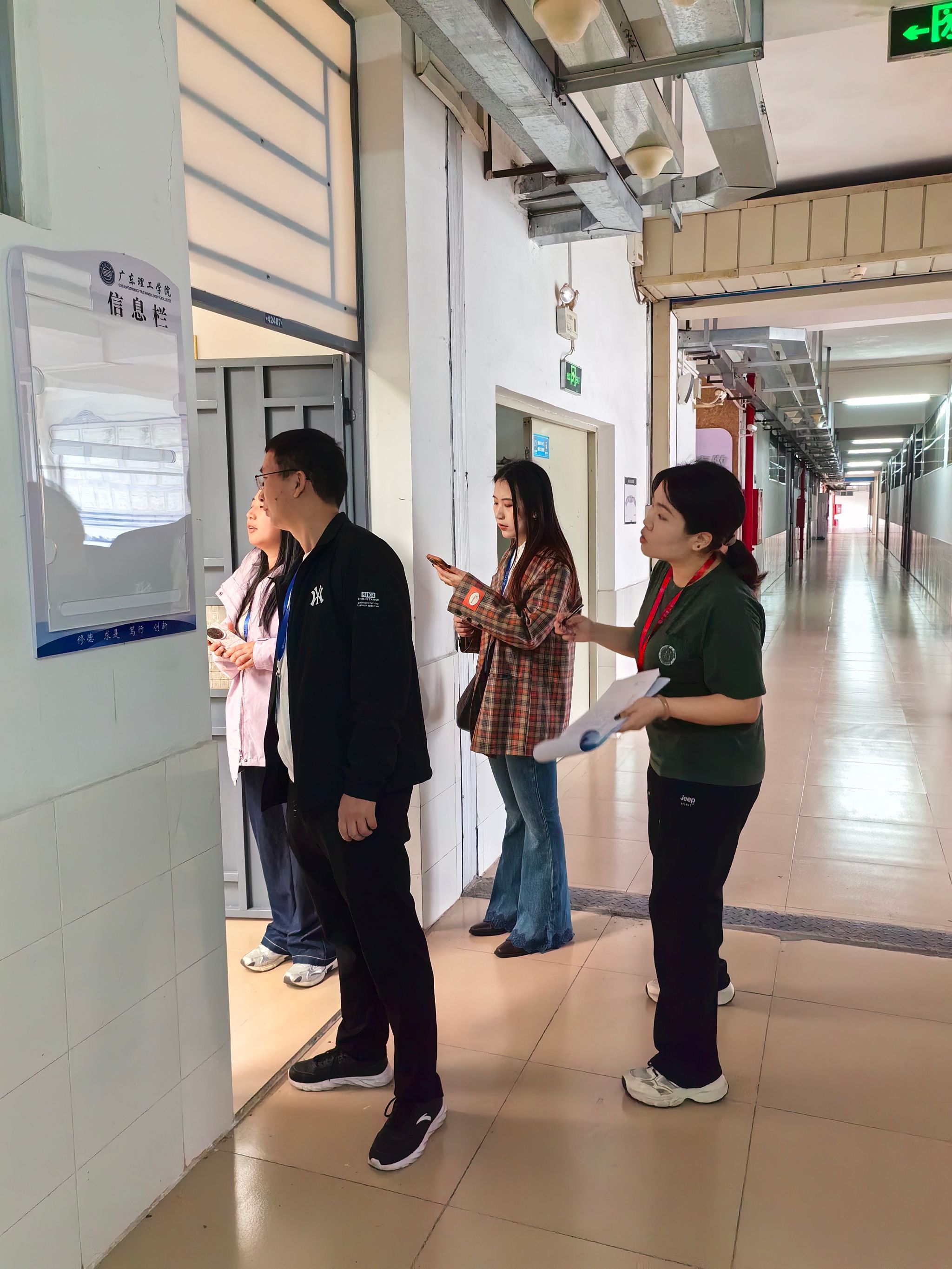 此次查课工作统筹推进、分组实施,共组建2个查课小组,分别由学院甘怀南书记、庞小兰副院长及黎志勇黎志勇副院长、魏淼副书记带队,其它党委委员、学院办公室、教务办公室全员分工协作、同步开展检查。上午8时,全体查课人员在9栋1楼集中集结,明确分工与工作要求后,迅速奔赴指定区域开展检查。其中第一组负责4栋、9栋教学区域,第二组负责42栋教学区域,实现全院教学区域全覆盖。