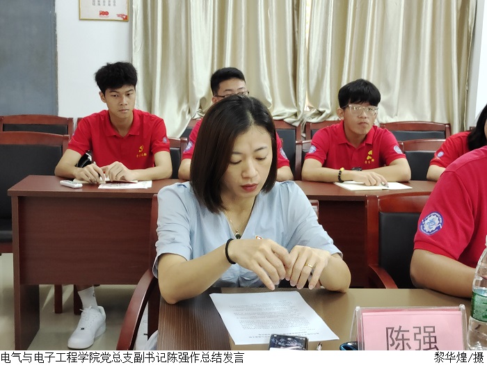 本网讯(电气与电子工程学院学生党建工作中心 叶运黎/曾帆)6月20日中午,电气与电子工程学院在7203会议室召开学生党建工作中心党务工作培训班结业典礼暨学年工作总结大会。党总支副书记陈强、学生党支部书记叶运黎、宣传委员胡涵出席会议,学生党建工作中心全体学生干部参加。
