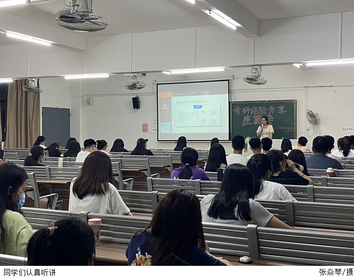 本网讯(经济管理学院 陈锐杰)为加强学院学风建设,更好指导学生考研工作,5月24日晚,经济管理学院在7306教室召开考研经验分享会。活动由蒋林秀老师主讲,经济管理学院学工部部长魏甫龙、助班团指导老师谢芷薇及学院有考研意向的同学参加。