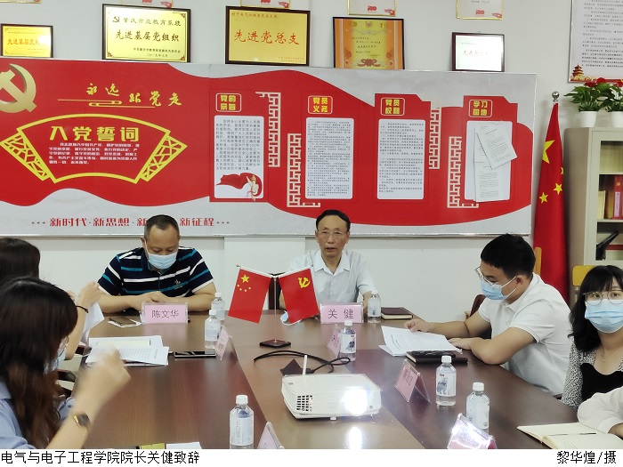 本网讯(电气与电子工程学院 叶运黎)为促进学生党建工作规范化、制度化,充分发挥学生党组织的积极性和创造性,5月17日,电气与电子工程学院在7203会议室召开学生党建工作中心成立大会。电气与电子工程学院院长关健、党总支书记陈文华、党总支副书记陈强、学生党支部书记叶运黎出席会议,学生党支部委员、辅导员、教务员、行政秘书、学生党支部全体学生干部共同参会。