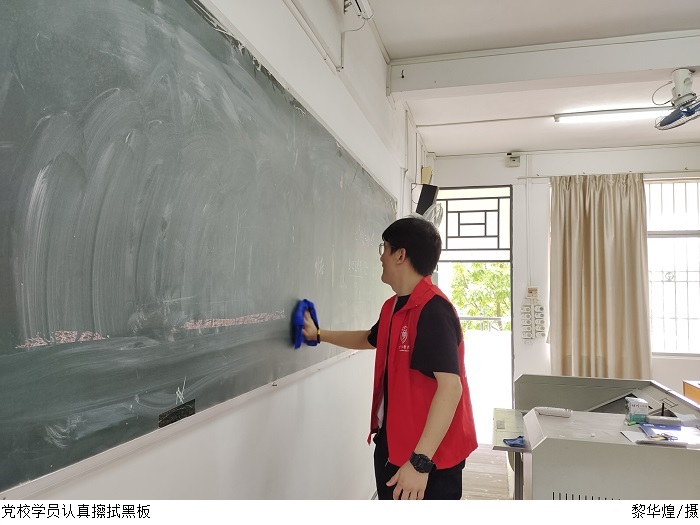 大清扫过程中,学员们根据分组安排到达指定楼层,用抹布、脸盆、扫把、簸箕等工具,认真细致打扫教学楼各个角落,擦抹课桌、黑板、清理教室地面垃圾。经过全体学员的辛勤劳动,教学楼呈现出整洁亮丽、活泼清新的新气象。