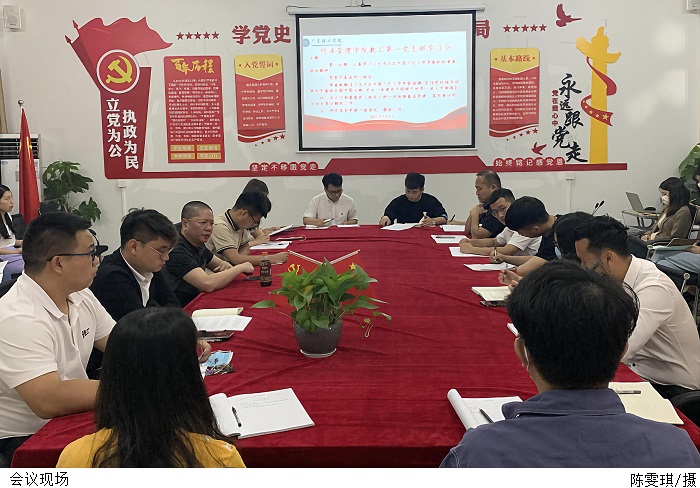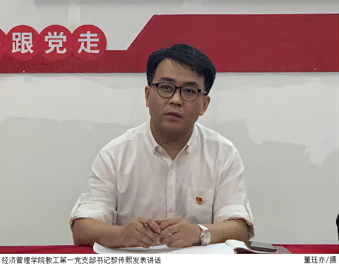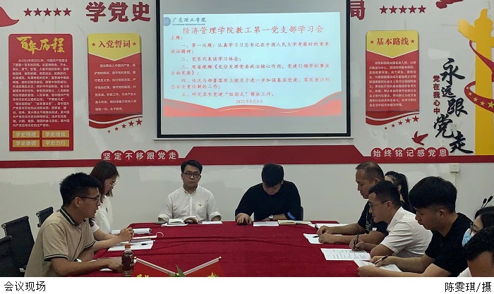本网讯(经济管理学院新闻中心 卢萍)5月9日下午,经济管理学院教工第一党支部于4103党员活动室召开支部政治理论学习会议。党总支书记甘怀南对学院党建工作提出要求。教工第一党支部副书记张俊勇领学习近平总书记在中国人民大学考察时的重要讲话精神。教工第一党支部书记黎传熙主持会议。