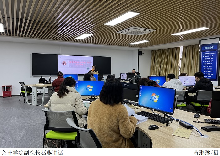 本网讯(会计学院 黄琳琳)为进一步提高教师对集团管控的认知,顺利开展《集团管控综合实验》的教学工作,会计学院于12月27日在科技楼504财务数智化实验室举办“集团管控综合实验”教学培训。此次培训由会计学院副院长赵燕主持,龙凤好老师主讲,会计学院60位教师参与听讲。