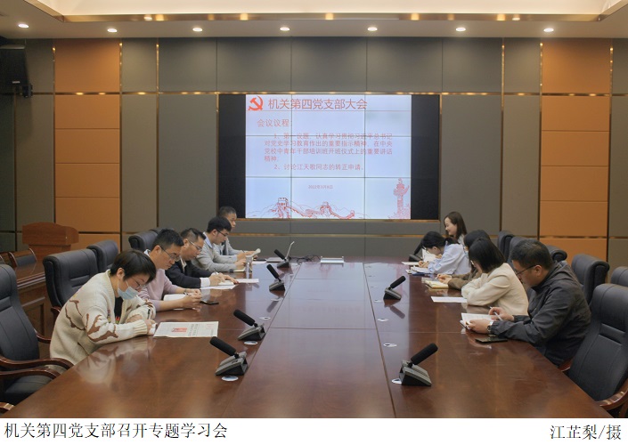 本网讯(机关第四党支部 林潘能)3月8日上午,机关第四党支部在行政楼一楼会议室召开专题学习会,彭广英同志主持。