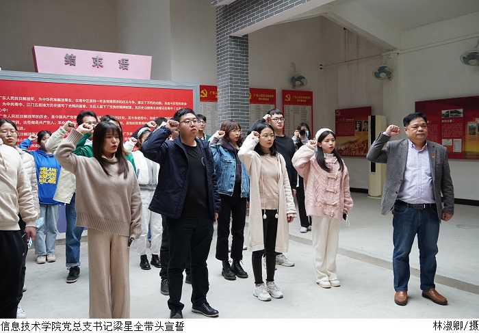 早上9点全体党员前往江门市鹤山,先后参观了中共鹤山支部、鹤山县苏维埃政府旧址、云乡张怀楼及广东人民抗日解放军司令部旧址,瞻仰云乡革命烈士纪念碑,回顾抗战史,追寻革命足迹,了解广东人民抗日解放军成立与发展的历程,重温红色记忆,以史为鉴,勇毅前行。在参观学习过程中,学院党总支书记梁星全还带领全体党员同志重温入党誓词,希望党员能坚定理想信念,不断增强政治定力,牢记在党旗下的铮铮誓言,赓续共产党人精神血脉,把好传统带进新征程,将好作风弘扬在新时代。
