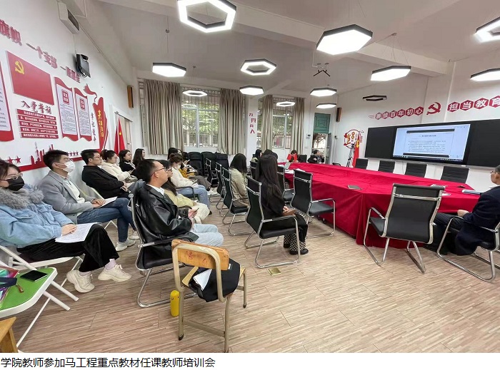 王琳院长在培训前指出,讲好思政课要吃准吃透“马工程”重点教材的主要内容和基本精神,只有对教材的指导思想、理论脉络、框架结构、重点难点问题深刻研究和理解,才能讲出一堂精彩的思政课。希望青年骨干教师能够以此次培训为契机提高个人教学水平。
