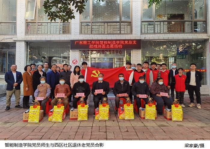 本网讯(智能制造学院 但志慧)为进一步贯彻落实国务院相关文件精神,积极推进学校服务社会,服务地方“助残济困”主题爱心活动,智能制造学院党总支带领师生于12月24日下午前往高要西区社区开展退休老党员的助残济困志愿活动。党总支书记彭清林、智能制造学院副院长谢娟烘,党总支副书记苏庚华、宣传委员冯丹艳,学生党支部书记陈钦腾、学工部长郑焕新、党员老师以及学生代表等参加活动。