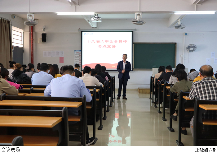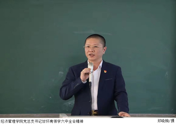 本网讯(经济管理学院)11月30日下午,经济管理学院在5204召开学习贯彻党的十九届六中全会精神宣讲会。经济管理学院党总支书记甘怀南领学,全体教职工参会。