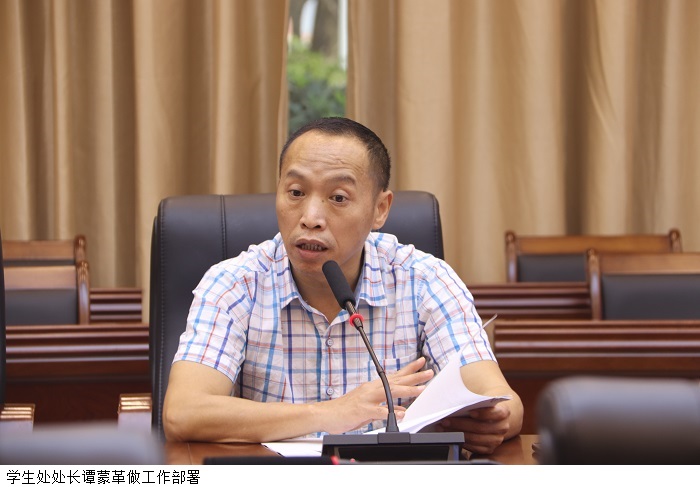 本网讯(学生处 李家辉)10月29日下午,学生处在行政楼101会议室召开关于开展“文明示范宿舍”、“杰出舍长”和“学生宿舍管理先进院系”评选活动工作会议,各院系党总支书记、学工部长参会。会议由学生处处长谭蒙革主持。