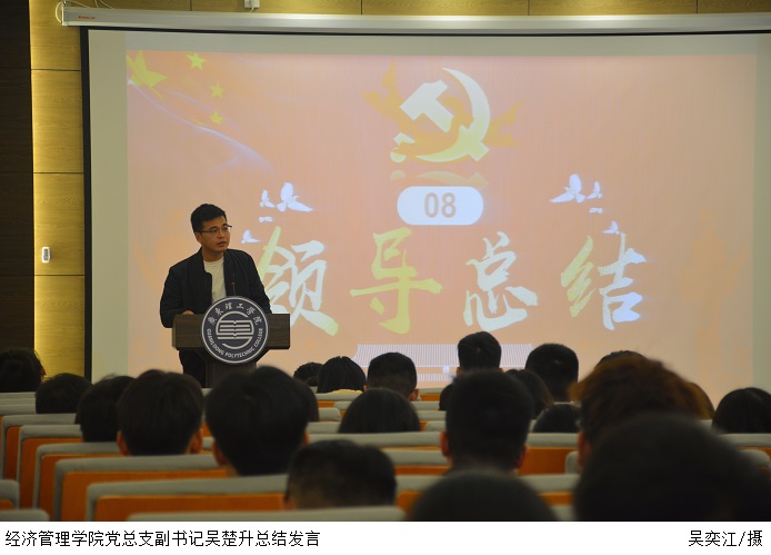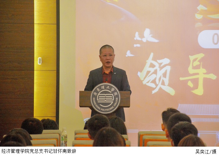 本网讯(经济管理学院 马静仪)11月9日下午,经济管理学院党建中心在学术报告厅举办“普法、修德、守纪,创建优良学风”演讲比赛决赛。经济管理学院党总支书记甘怀南、副书记吴楚升出席,辅导员担任评委,各组织代表、21级各班学生代表、在校学生党员、2021上半年发展对象及党建中心工作助理参加活动。