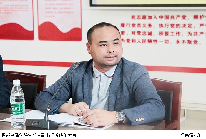 本网讯(智能制造学院 薛嘉健)11月16日下午,智能制造学院党总支在9304会议室开展专题学习会,认真学习贯彻党的十九届六中全会精神。智能制造学院党总支副书记苏庚华主持会议,副院长杨斌领学党的十九届六中全会精神,全体教师参加。