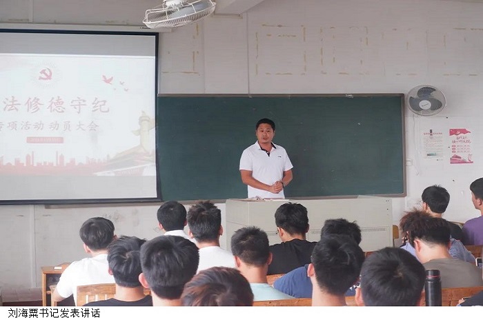 党总支书记刘海粟指出,作为担当民族复兴大任的时代新人,应该做到学法、知法、守法;作为学生,要端正自己的学习态度;作为体育人,树立公平公正的观念,培养诚实的品格;作为学生干部,要恪守学生本分,履行工作职责,遵守法律法规、校规校纪。