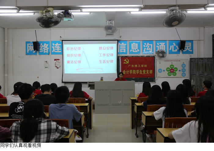 会议开始,主持人组织学生观看有关中国共产党条例解读的学习视频。视频从政治纪律、组织纪律、廉洁纪律、群众纪律、工作纪律、生活纪律六方面展开解说,视频中对六项纪律规定的每种违纪行为进行深度评论解析,使同学们更加清晰地了解党的要求,深刻领悟学习党内法规的重要性,充分认识到党章是党的根本大法,是全党必须遵循的总规矩。通过本次活动,加强了同学们对党内法规理论知识的学习。