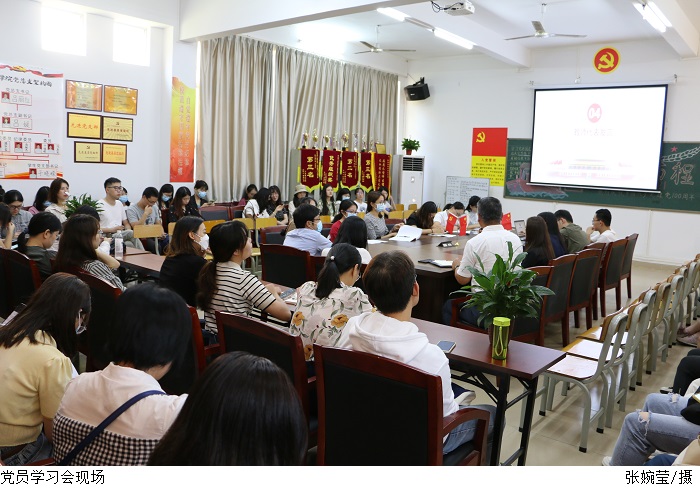 本网讯(新闻中心 朱政立/钟玉君)10月19日下午,外国语学院在37101党员活动室召开党员学习会,本次会议主题为“深入学习习近平总书记给全国高校黄大年式教师团队代表的重要回信精神”,旨在提高外院教师的思想意识、加强工作作风建设。会议由外国语学院学生党支部书记尚旭杰老师主持,党总支书记吕丽红、副书记吕媛、副院长王泽熙、海外留学教师代表和全体党员教师出席。
