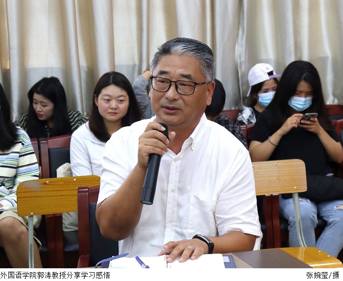 郭涛教授、教学名师黄小辉老师、海外留学代表侯欣婷老师分别在会上分享了各自的学习感悟。