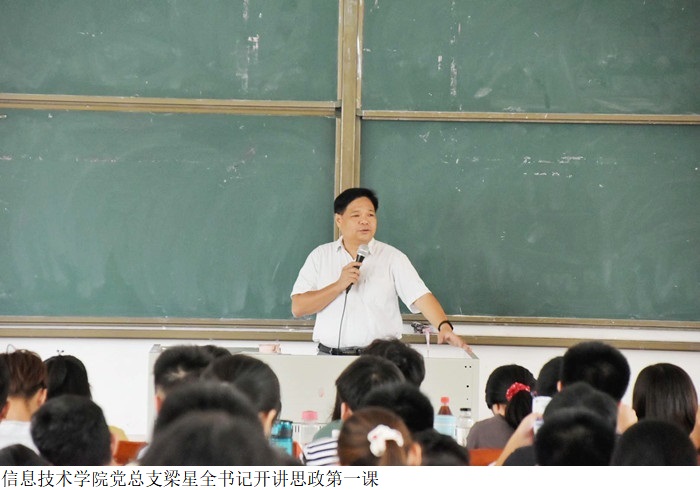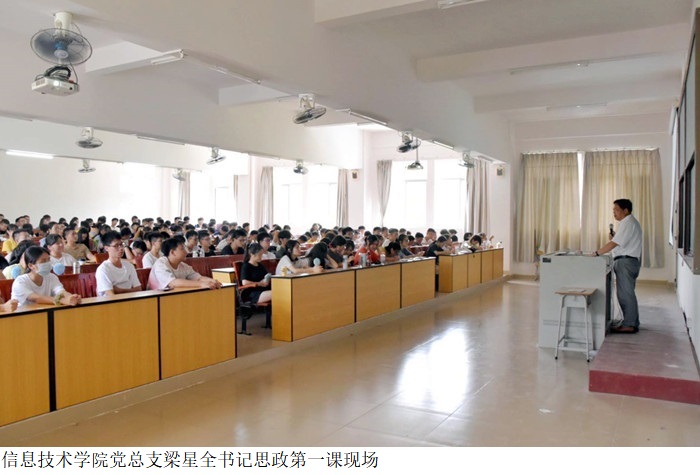 本网讯(信息技术学院 林淑卿)为深入贯彻习近平新时代中国特色社会主义思想及习近平总书记“七一”重要讲话精神,引导学生树立远大理想,信息技术学院党总支梁星全书记于9月16日在伟德官网振华楼501室为2021级新生讲授思政第一课。