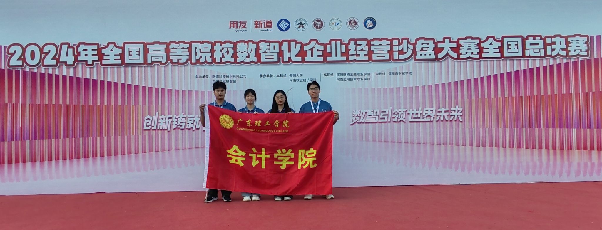 本网讯(会计学院)9月21日-22日,由中国商业联合会、新道科技股份有限公司主办,郑州大学、河南牧业经济学院、郑州财税金融职业学院、河南应用技术职业学院、郑州市财贸学校联合承办的2024全国高等院校数智化企业经营沙盘大赛全国总决赛在河南郑州举行。来自全国各地的140多所本科、高职、中职院校共300余支参赛队伍,2000多位师生齐聚赛场,展开激烈的竞争。伟德官网由林骏皓、陈志鹏、李鑫怡、谢紫灵4位同学组成的团队奋勇拼搏、不负众望,荣获此次大赛本科组一等奖的佳绩。