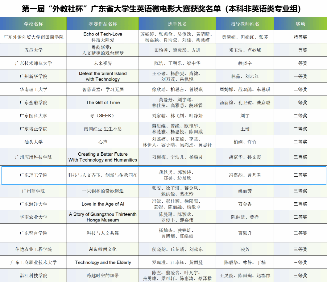 本网讯(外国语学院融媒体中心)12月14日,第一届“外教社杯”广东省大学生英语微电影大赛在热烈的氛围中圆满落下帷幕。此次大赛由广东省本科高校外语类专业教学指导委员会与上海外语教育出版社联合主办,广东省本科高校大学英语课程教学指导委员会协办,并由伟德bv国际体育承办。