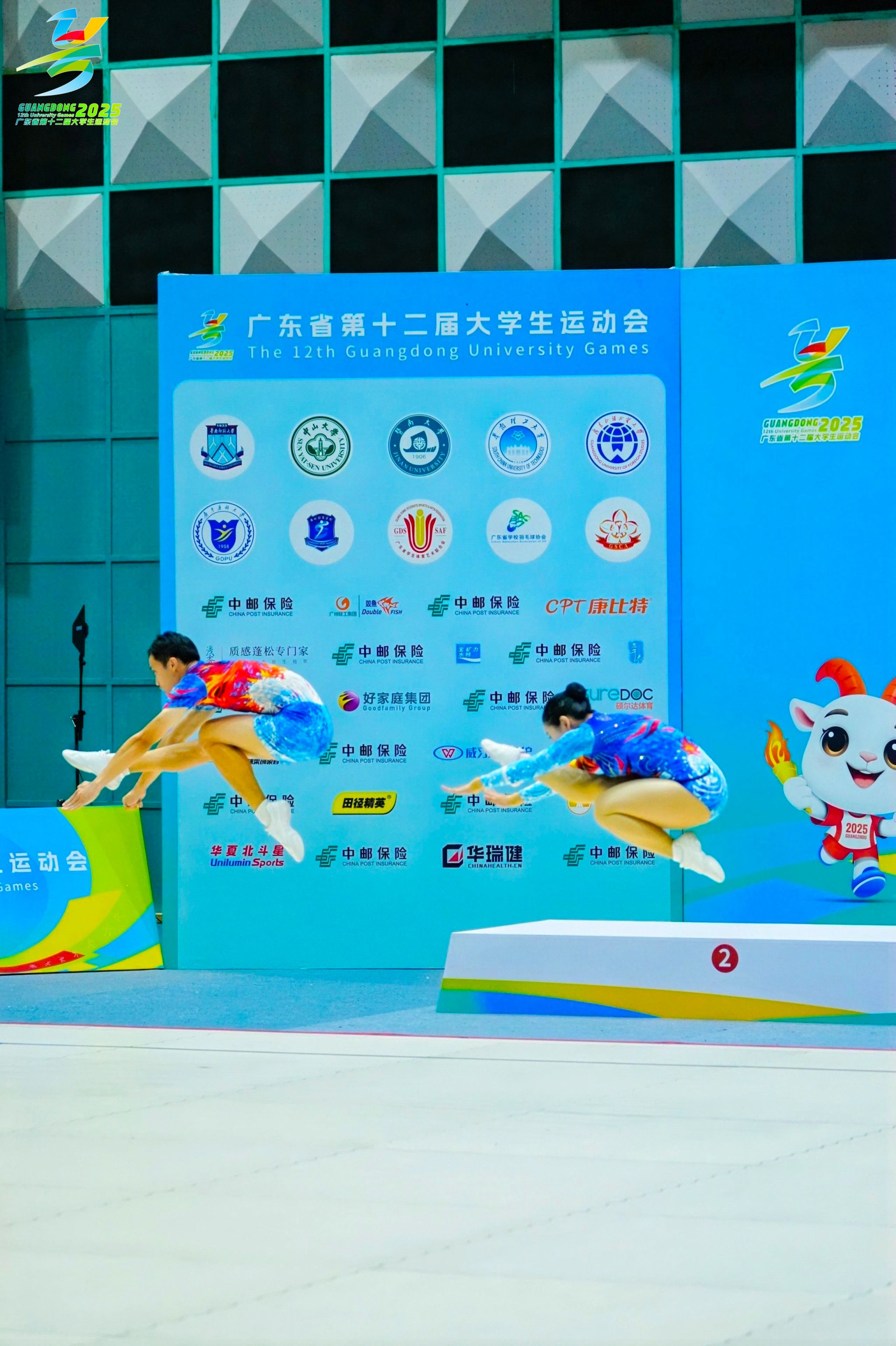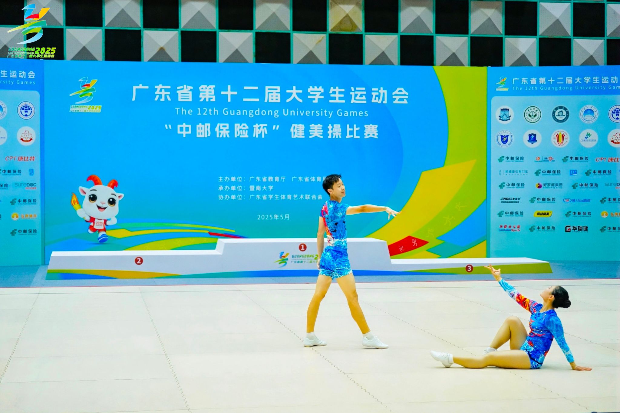 本网讯(体育学院新闻中心)5月8日至11日,广东省第十二届大学生运动会健美操比赛在暨南大学(石牌校区)邵逸夫体育馆隆重举行。本届赛事汇聚了全省42所高校的400名师生同场竞技,设有甲、乙、丙三个参赛组别,其中甲组设有男子单人操、女子单人操、混合双人操、三人操、六至八人有氧舞蹈五个竞技项目。