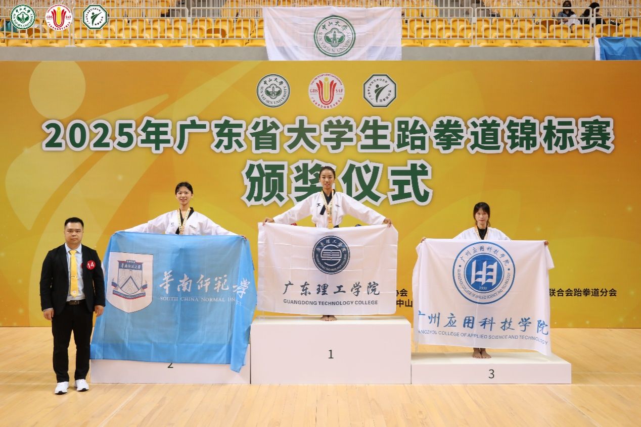 本网讯(体育学院新闻中心)2025年广东省大学生跆拳道锦标赛于5月30日至6月2日在中山大学(深圳校区)体育馆隆重举行。本次大赛由广东省学生体育艺术联合会主办,中山大学承办,吸引了来自全省60多所高校的1200余名选手参赛。伟德bv国际体育跆拳道队凭借出色表现,斩获4金3银11铜及7项前八名的优异成绩,并以甲组竞技团体总分一等奖、乙组竞技与品势双团体一等奖的亮眼战绩,彰显了强劲实力。