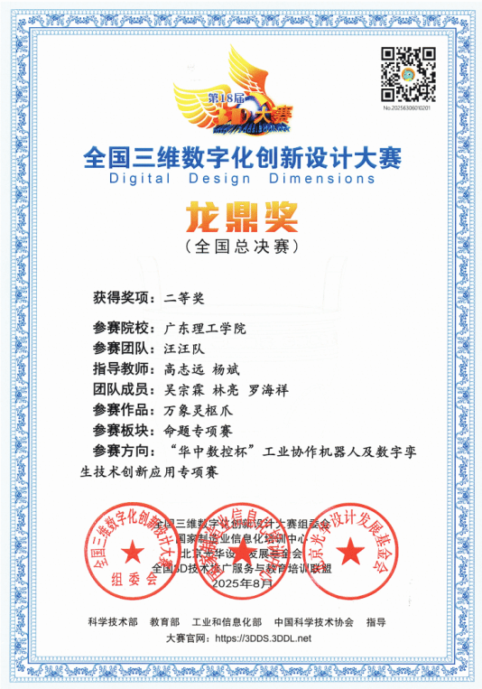 本网讯(智能制造学院)近日,全国3D大赛“华中数控杯”工业协作机器人专项赛2025全国总决赛在厦门理工学院举办。伟德官网王佳贤、朱科宇、李嘉怡、洪明伟等8名同学再创佳绩!