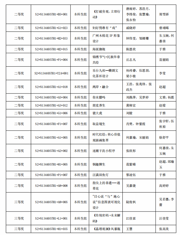 伟德官网本科生团队在专业老师张高美、徐舒平、高婷婷,徐莹君、何媛、何惠倩,朱玉婉、马瑞、候震、李莹、于雅、赵超、张宇轩、伍秋裕、郑雪娇、曾靖睎、聂丽娟、赵檬、文雅、杨震、吴若愚、李 蕾、汪佳莹、石晓宇、邱瑜玉老师的悉心指导下,凭借出色的创意和扎实的专业功底,脱颖而出,斩获国家级赛8项大奖。荣获一等奖2项,二等奖2项,三等奖4项,省级赛50项大奖。荣获一等奖12项,二等奖17项,三等奖21项,陈彩云 、张高美、徐舒平老师获优秀组织教师,伟德bv国际体育凭借优异成绩获优秀组织单位。