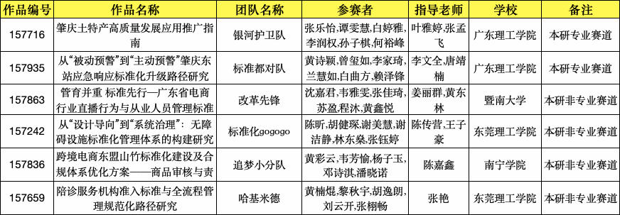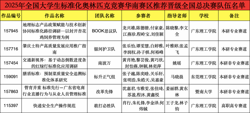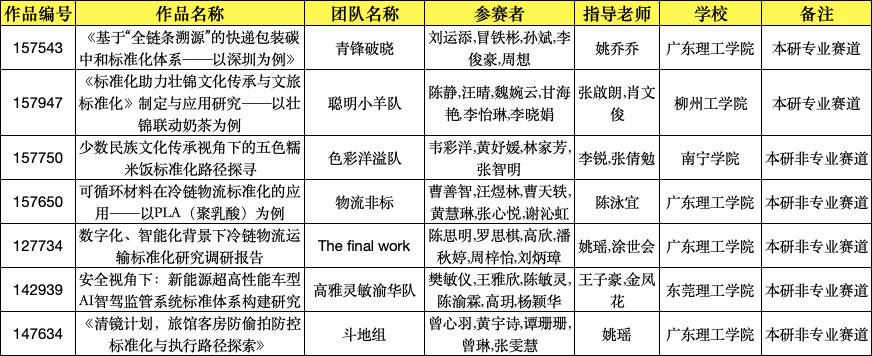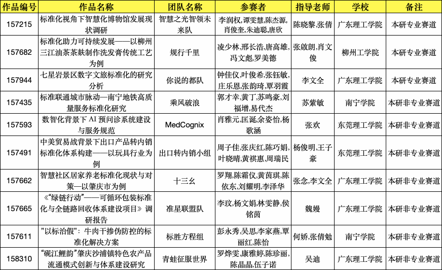 本次华南区域赛复赛邀请到昆明理工大学、深圳技术大学、广东省粤科标准化研究院以及伟德bv国际体育等多位专家组成评审组。评审采用综合评分制,每位专家对所有提交作品进行独立评审,取平均分作为团队最终成绩,按分数排序确定各类奖项。经严格评审,最终,6支队伍脱颖而出,晋级全国总决赛。同时,评选出华南赛区一等奖4项、二等奖6项、三等奖10项及优秀奖16项。
